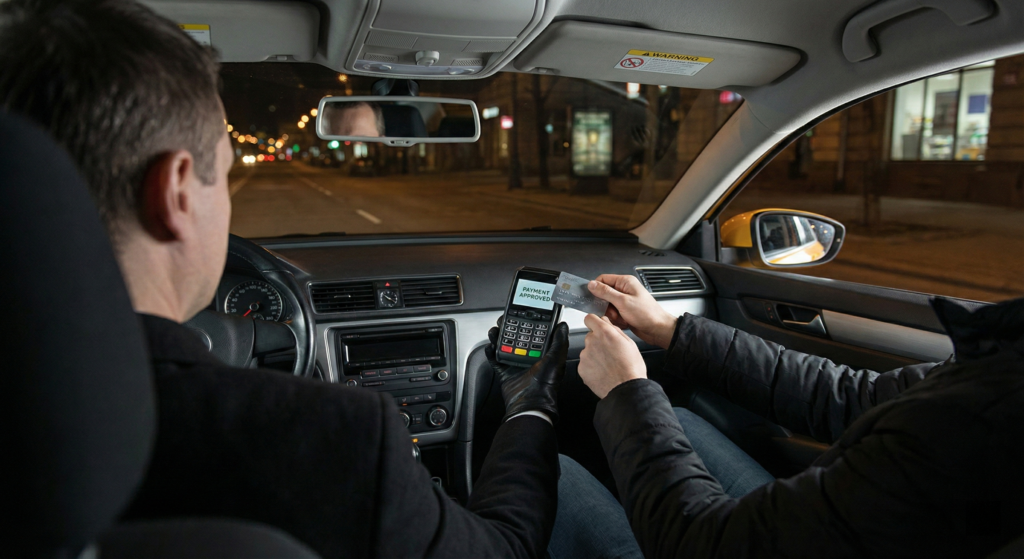 Sicher & Direkt: Die Zahlung wird über eine gesicherte Online-Verbindung direkt im Fahrzeug autorisiert. Der Fahrpreis wird sofort gebucht, und Sie erhalten auf Wunsch umgehend Ihren Beleg.